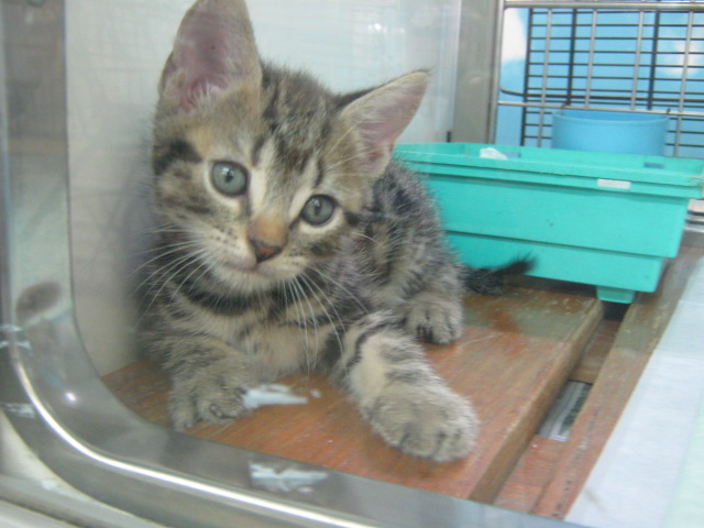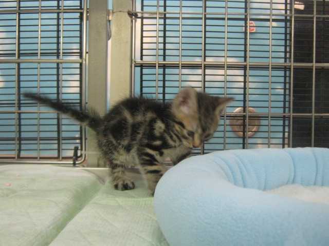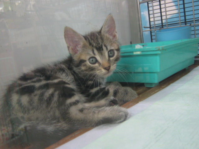 アメリカン・ショートヘアのブラウンタビーという毛色の男の子です。