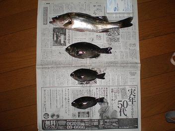 34cmのスズキの子供を筆頭に小メジナなど短時間にしては釣れた方です。