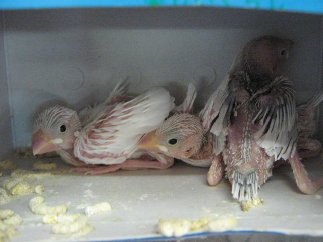 文鳥さんのひな達!このくらいから育てれば、バッチリ手乗りになりますよ!