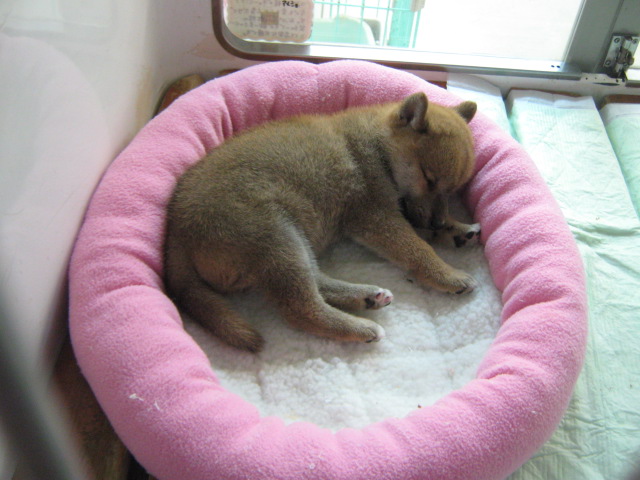 ぐっすり寝ている柴犬の女の子。