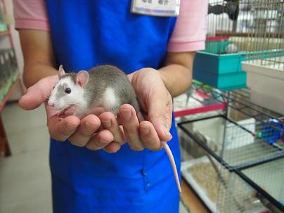 リード無しでも絶対どっかへ行ってしまわない、とっても良く馴れたホワイトシマリスさんは男の子です。