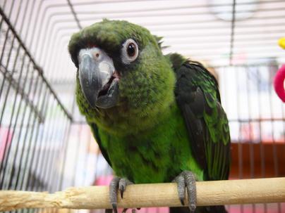 なんと、お店の新たな看板鳥の「モモイロインコ」が突然、トレードと相成りました。