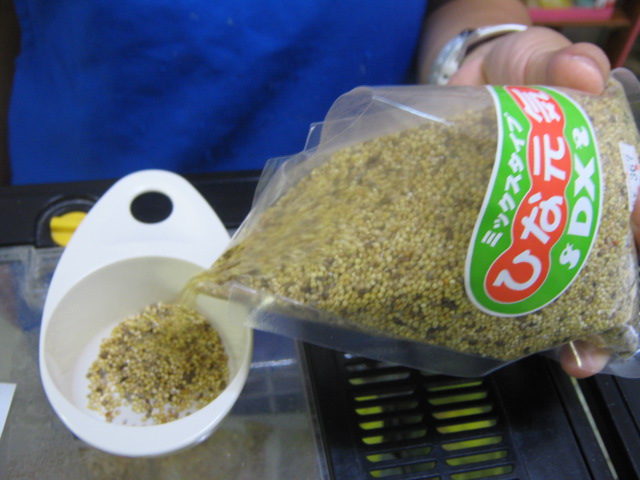 だって、親鳥は自分の食べてきたものを吐き戻してヒナに与える訳ですが、別にアワだけを選んで食べてきてる訳ではないですからね。 なので、東葛ペットではアワだけでなく、他の穀物もブレンドされた「ヒナ元気DX」をオススメし、お店でも使用しております。