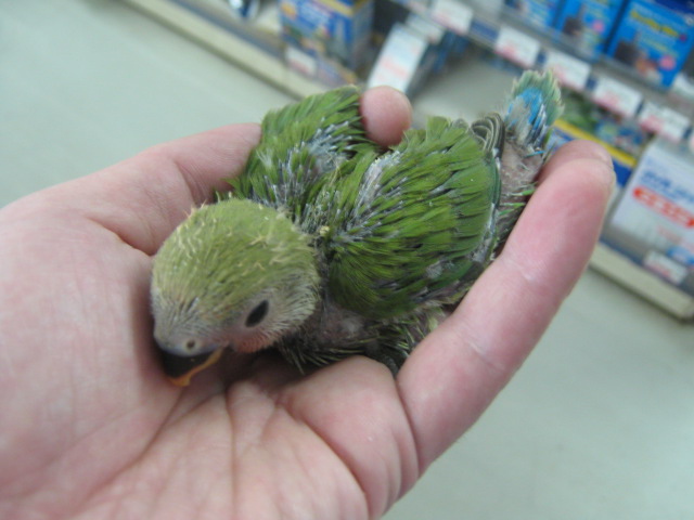 何を連れてきたのかと言いますと、今回はあまりステキな出会いが無くって、連れてきたのはセキセイインコのヒナだけです。