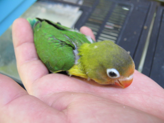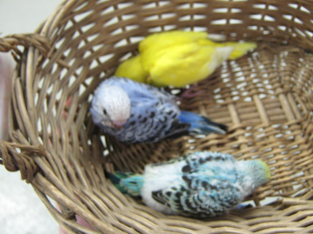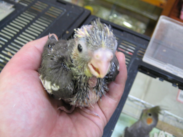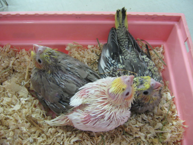 セキセイインコのヒナも4羽連れて来ました! キレイな「スパングル」も1羽います!