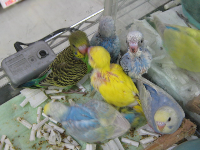 ホントは全部で7~8羽選んでいて、そのコ達を連れて帰って来ようとしていたのですが、本社生体部の若手社員Y君が、「セキセイは3羽までにして貰えますか?セキセイは今入って来る数が少なく、他にもまわさなきゃいけないので!」と私相手に結構ビシッっと言ってきて、私も珍しくそれにちょっとたじろぎ、「じゃっ、じゃあ、5羽に減らせばいいでしょ?ね?・・・いや!よ、4羽!! 4羽頼むよY君