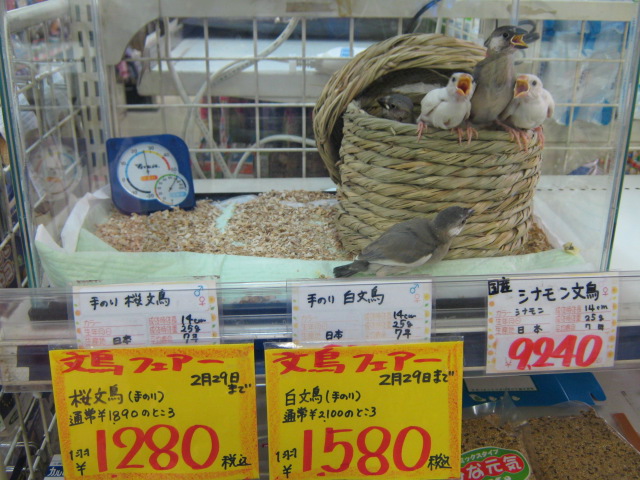 2月も昨日で終わり・・・おかげ様で大好評だった「文鳥さんフェア」も終了し、文鳥さん達がいたあの場所は・・・