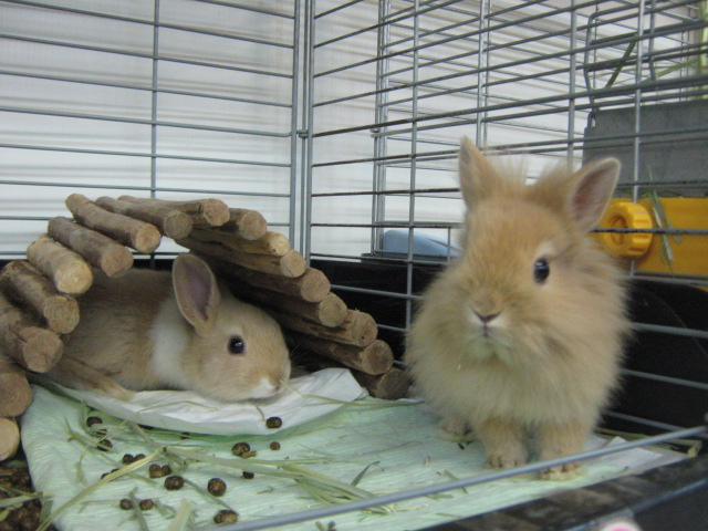 」って言ってかくれているのはミニウサギさんで、堂々としている右の方はライオンラビットさんです。