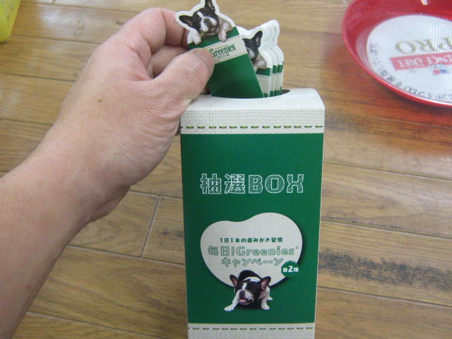 さて、先日の記事の最後の方に、「グリニーズ」をお買い上げ頂くと、面白いことがあるよ!というようなことを書かせて頂きましたが、今日はそれについて詳しくご説明しちゃおうと思います!