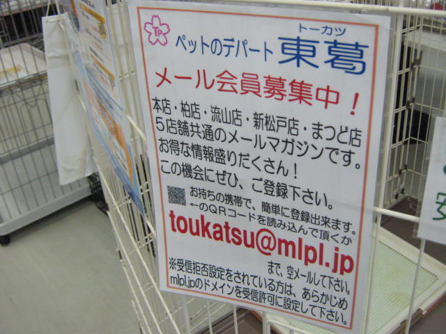 ちなみに今すぐQRコードを取り込む方法で登録したい!という方はまずパソコンで当社ホームページ→ペットのデパート東葛を開いて頂き、トップページの左隅に「メルマガ会員募集中」という枠がございますので、その枠の中にQRコードがございます。