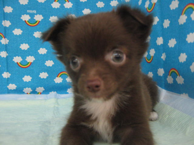 チョコ&ホワイトというおしゃれな毛色の男の子!! 胸の白い毛がおしゃれです!
