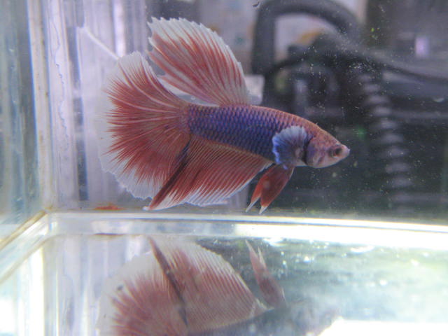 ハーフムーン・ベタも3種類入荷!3種類ともオスメスペア販売なのですが、ここではオスだけ紹介します。こちらは「レッドフィン・ブルードラゴン」で