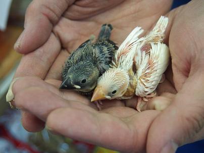 文鳥さんのヒナ!白と桜1羽ずつですが連れて来ました。