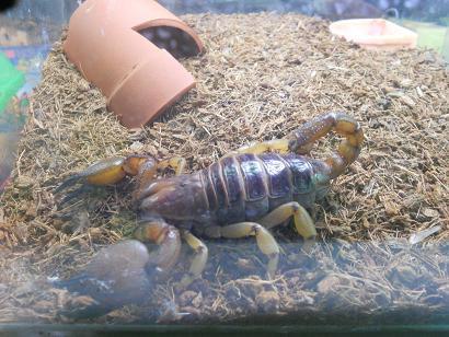 お次はこちら「デザートヘア・スコーピオン」。乾燥した環境を好むサソリさんです。