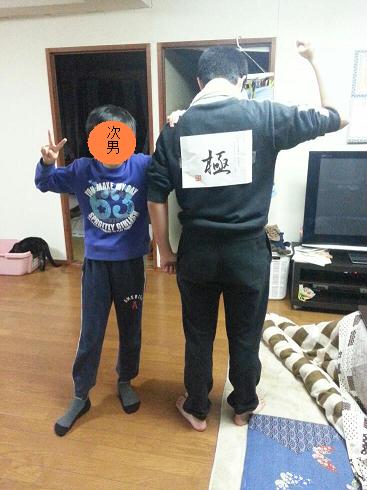 関西弁が書かれたタオル(笑)。 次男坊の赤いやつは「めっちゃええねん」、長男の黒いやつには「どないやねん」と書かれております