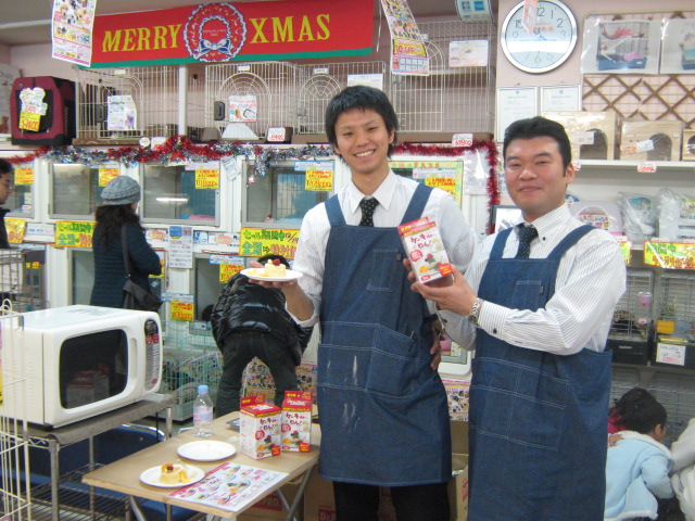 イベントをやって下さったメーカーさん(日本動物薬品さん)も一生懸命やって下さいました。左側の方はイケメンだし、右側の方は丁度ジャムおじさんみたいな感じで、ケーキイベントにぴったりでした