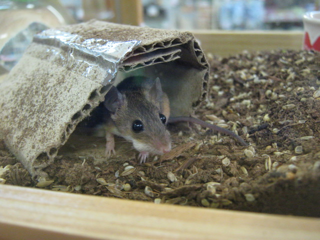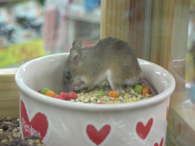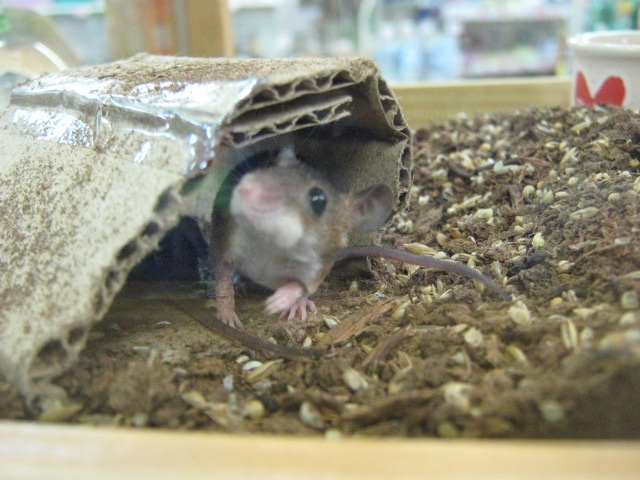 レジのところに置いてある水槽の中にいる「アフリカチビネズミ」のご夫妻。