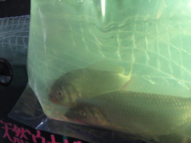 こちらもまだ袋の中の「ヘラブナ」さっきの野鯉と同じくらいのサイズです。尺鮒に育てよう!!