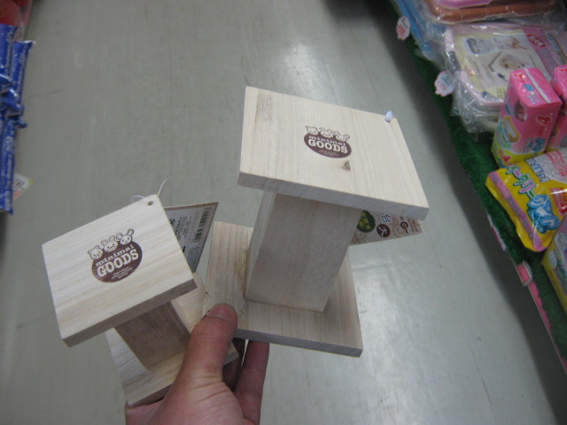 それからこちらはその名も「かじってちょー台」という、小動物が乗って台にもなるし、かじり木にもなるという商品。こちらも2サイズあります。