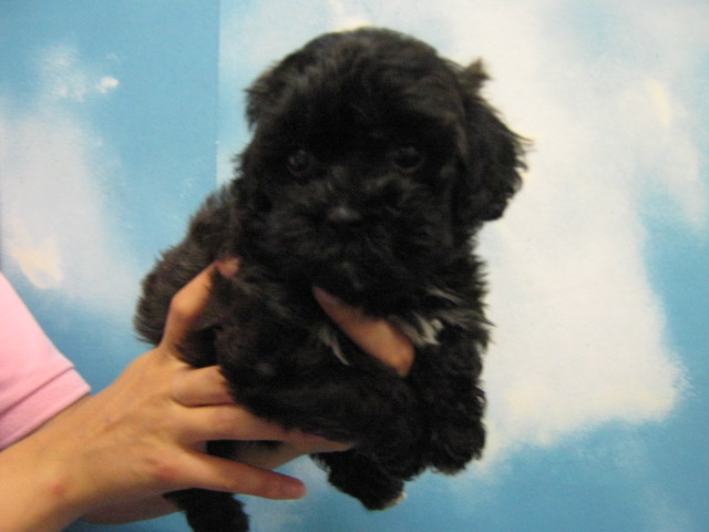 真っ黒けっけで分かりにくいですが、シーズーとプードルのミックス犬です。