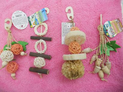 鳥用のおもちゃは、ろんの籠に入れたらパニックをおこしてしまうので、違う所に飾りたいなぁ