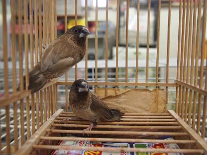 「ナイスカップルコーナー」にいつもいるチョコレート十姉妹。実は時々売れてこうして入れ替わってるんですよ。