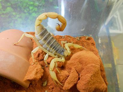 お次はこちら「デザートヘア・スコーピオン」。乾燥した環境を好むサソリさんです。