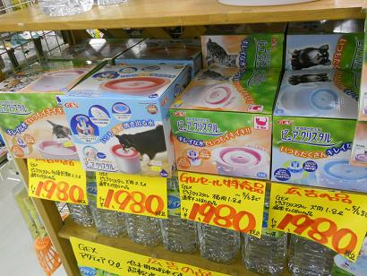 まず右の方、GEXさんの循環式水飲み器「ピュアクリスタル」!!いつでも清潔でおいしい水を与えられる!ということで大変人気商品!犬用も猫用もあり、ウチのしじみと牡蠣君もこの猫用を使っております