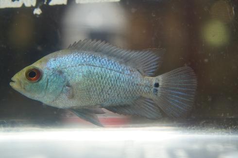 おお!青いね!かなり青いね!これはですね、フラワーホーンの「タイシルク」っていう種類のお魚です。