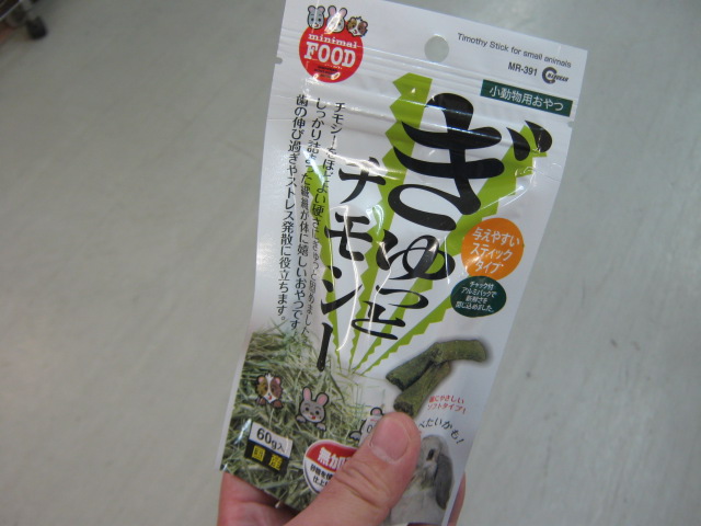 同じシリーズで「ぎゅっとチモシー」!! うさぎさんに欠かせない牧草「チモシー」をほどよい硬さにぎゅっと固めた健康おやつです!これを食べてみた特殊な社員(♀)が当社にはいるのですが、抹茶みたいな味がして、「ぎゅっとリンゴ」よりこっちの方が美味しい!とのことです。良い子の皆さんはマネをしないようにして下さい。