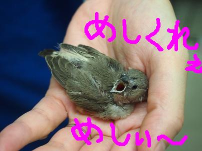 こうして「メシくれぇ~!」って口を開けるので、温めたヒナ用のエサを口に入れてあげるんです。