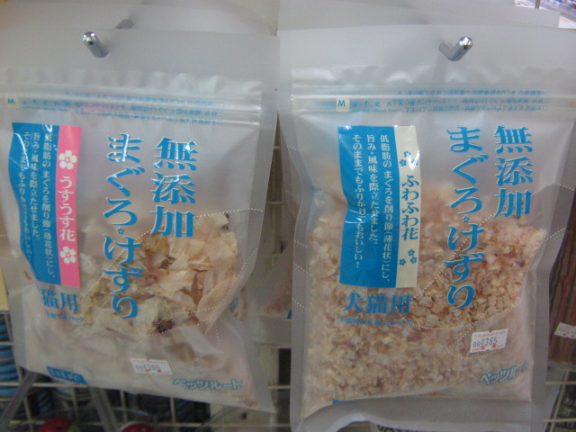 まぐろけずり!いわゆる、「まぐろ節」です。今までかつお節やささみ節などはありましたが、まぐろは無かったですよね?いつものフードにふりかけて与えるとおいしさアップ!です。