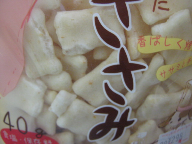 ワンちゃん用の「おかき」です。かりかりささみとかりかりえびです。