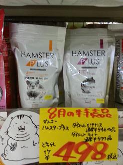 こちらはそのメーカーさんのハムスターフード「ハムスタープラス」。特価!! ¥498!!