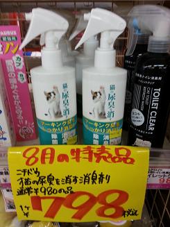 ネコちゃんの飼い主様には一番人気の消臭スプレー!便臭だけでなく、マーキング臭も消します!!