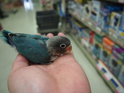 ブルーボタンインコのヒナ!まだウブ毛だらけです!かわいいっすよー
