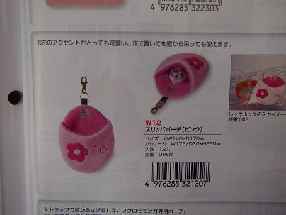 まずはこちら「スリッパポーチ」ハムちゃんやモモンガなどの小型小動物用ポーチです。