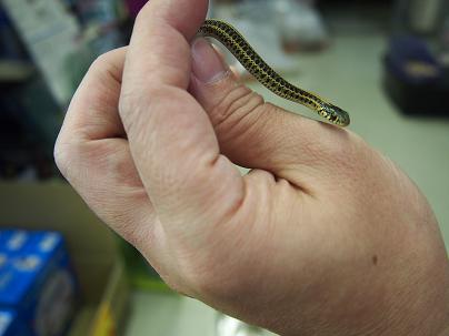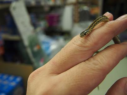 水辺のヘビさんで、メダカとかお魚も食べます。