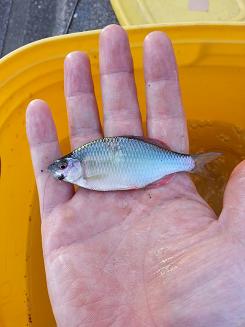 こんにちは!店長の森田です。私の部屋の水槽にちょっとお魚を足そうかなと思って、昨日はお休みだったので、家からそう遠くない、車で10分ちょいくらいのところの川に釣りに行ってきました。