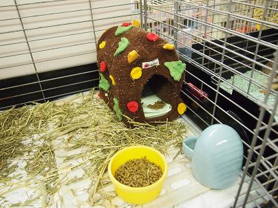 ケージにはこんなかわいいハウスを入れて貰っており、このコはほとんどこの中に入っております