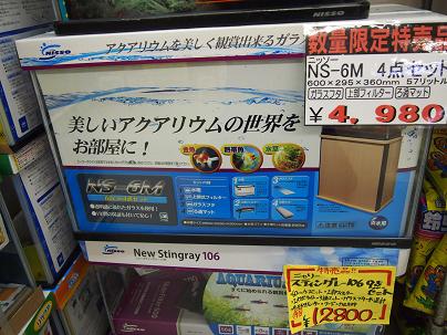 60cm水槽にガラスブタ・上部フィルター・ろ過マットが付いて¥4,980!!とか