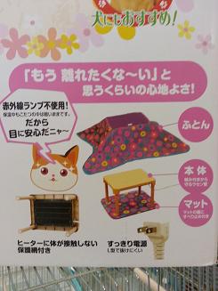 あのこたつって、先日のインターペットでドギーマンさんのブース内に展示して有った物と同じ物ですよね?