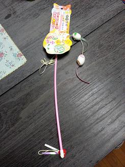 これはね、カイコのまゆ!この天然まゆのにおいと感触がネコちゃんにはもーたまらないらしいんですよ!狩猟本能がかき立てられるらしいです!