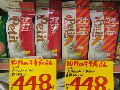 日本配合飼料さんの「プチ・ラビットフード」各種 特価!! ¥448!!