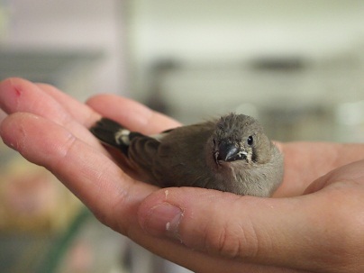 キンカチョウのヒナ! ノーマルカラー。1羽だけ入荷です。