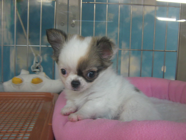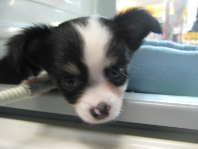 右から見た時と、左から見た時で違うお顔になっちゃう、ロングコートチワワ(女の子)。