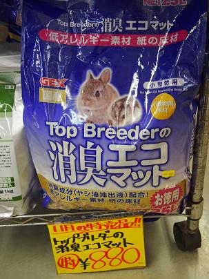 小動物の床材 「トップブリーダーの消臭エコマット」 特価! ¥880!!