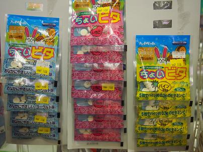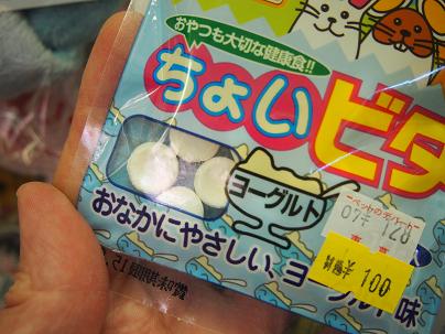 ラムネみたいなおやつで、パイン味・ヨーグルト味・いちご味の3種類があります。