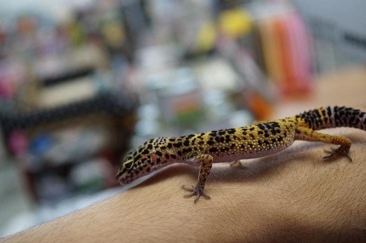 ヒョウモントカゲモドキの散歩。