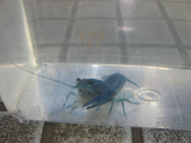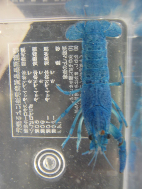 青いザリガニ「フロリダハマー」。残念ながら自慢のハサミが片方無かったりいたしますが、そのかわり大サービス価格です!!
